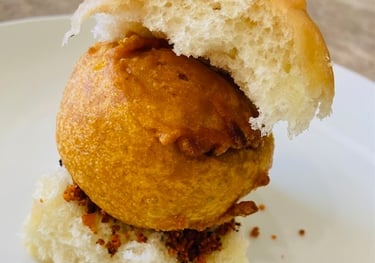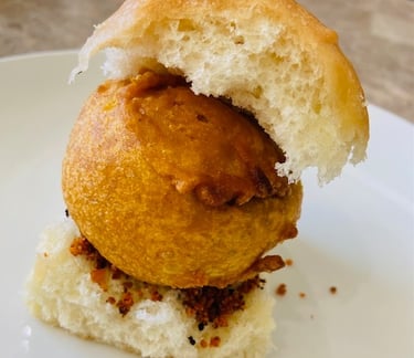 Vada Pav consists of a spicy potato filling (the vada) encased in a chickpea flour batter and deep-fried to golden perfection. This crispy, flavorful vada is then sandwiched in a soft pav (bun), accompanied by a variety of chutneys and a sprinkle of spicy garlic powder.
