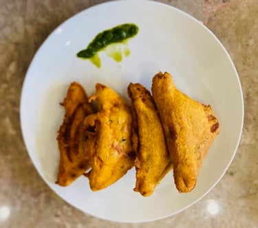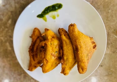 Bread Pakoda is made by dipping bread slices in a spiced gram flour batter and deep-frying them until golden and crispy.